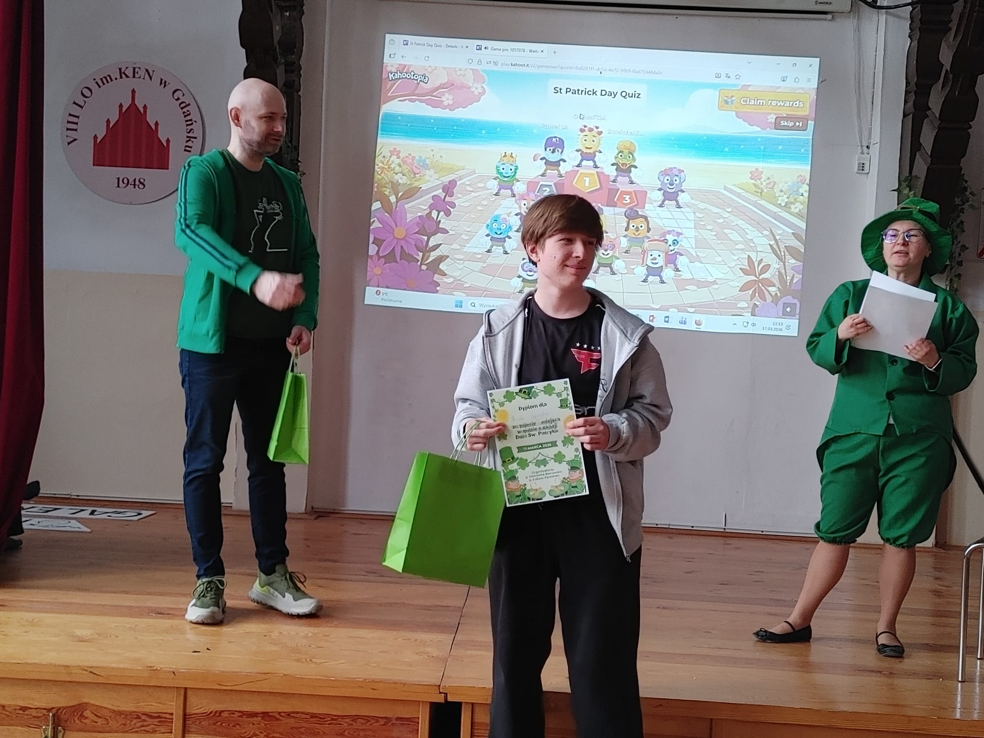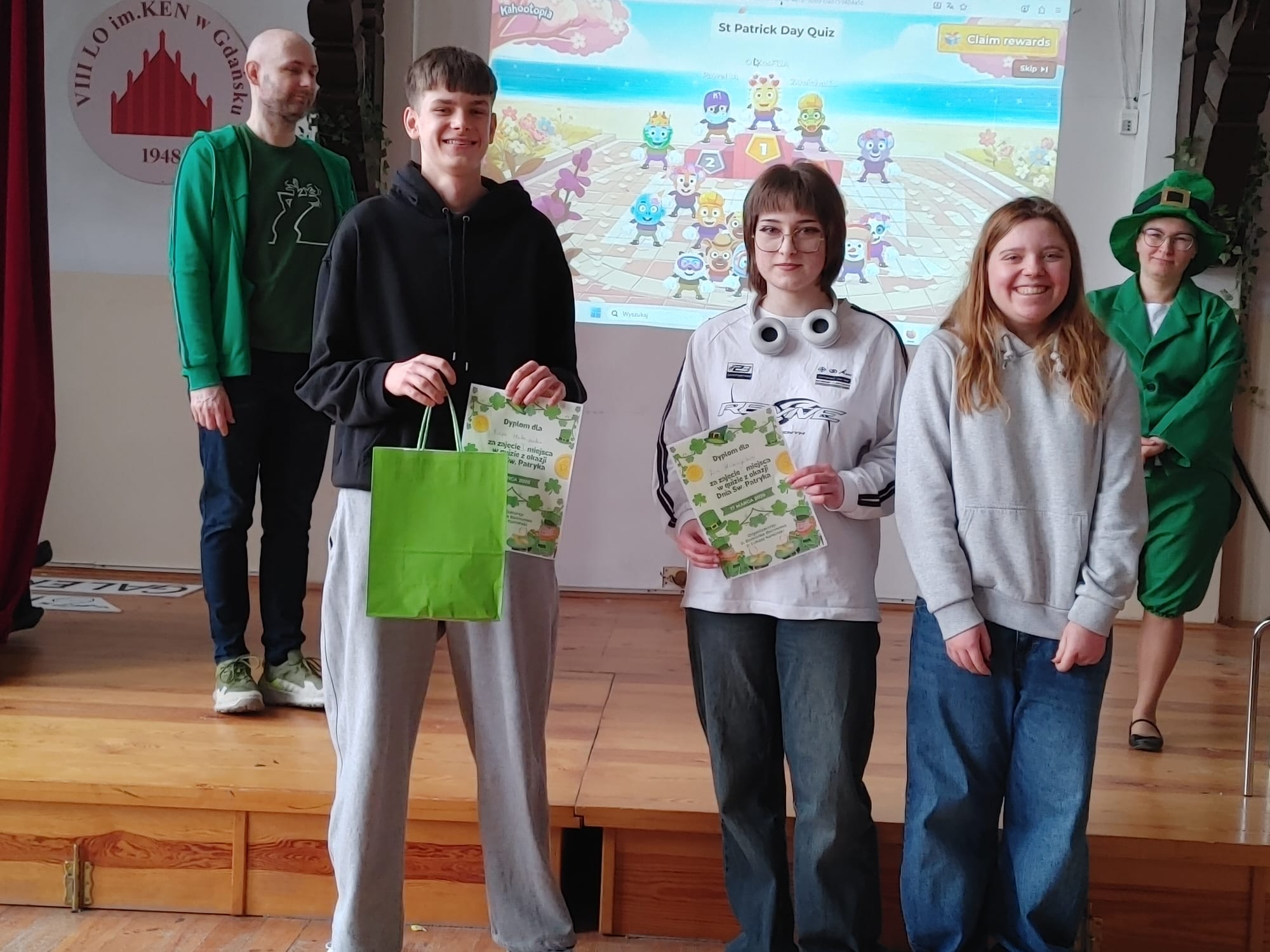 17 marca 2026 świętowaliśmy Dzień Św. Patryka, patrona Irlandii. Z tej okazji uczniowie klas I i II wzięli udział w multimedialnym quizie wiedzy o Irlandii i Św. Patryku oraz symbolach i zwyczajach związanych z tym świętem. Uczniowie pracowali w zespołach 1-3 osobowych, w sumie udział wzięło 15 drużyn. Poza zabawą, quiz dostarczył uczniom sporej dawki wiedzy - okazało się, że niektóre pytania były podchwytliwe, a nawet trudne. Zwycięzcy otrzymali dyplomy oraz słodkie nagrody.